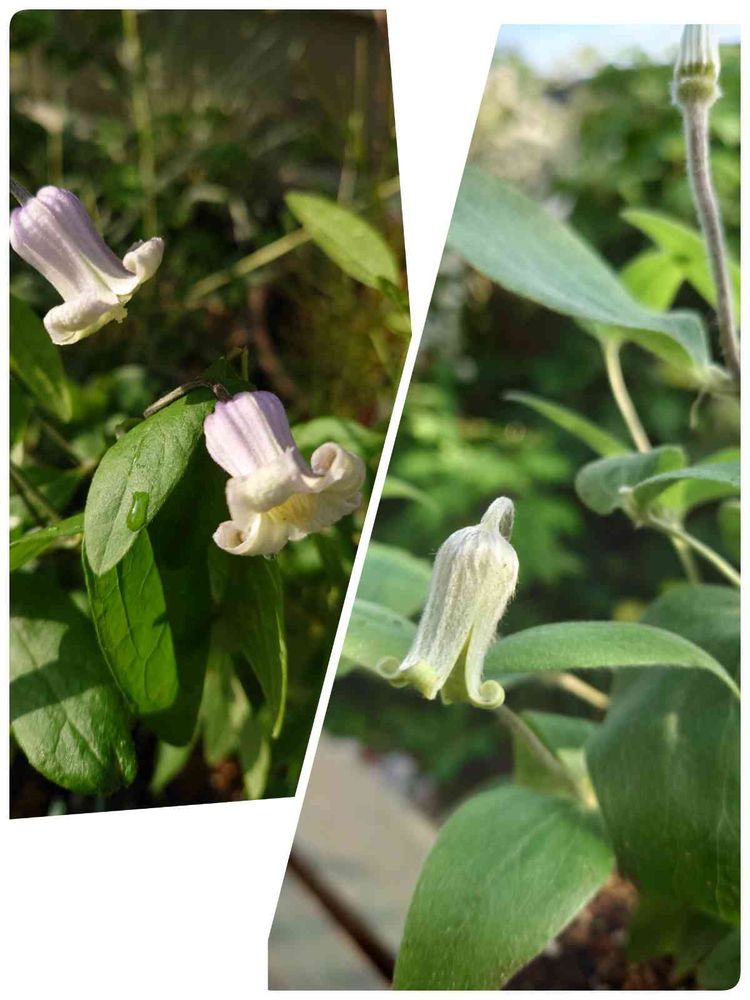2つとも、ツルにならない木立性の壺型で花に産毛が生えてモケモケタイプ(欲しかったので🥰💚)