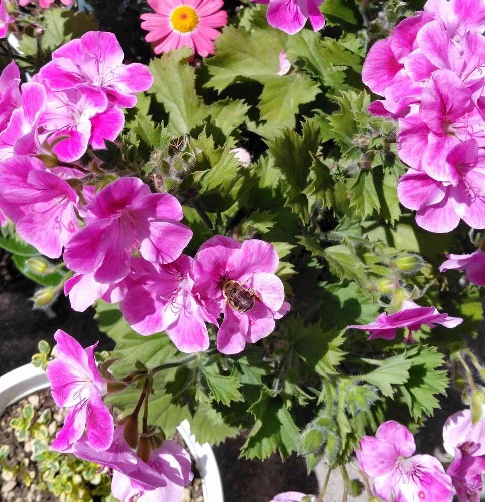 今日のお花パトロール中に蜂さんが。近くにあるオステオやマーガレット、ペチュニアを何度も物色してはペラルゴニウムに戻ってました。ペラルゴニウムがお気に召したかな☺️