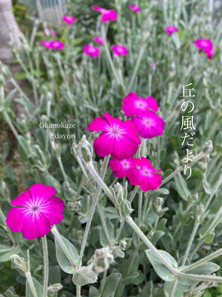ふわふわのリーフにピンクのお花が華やかなスイセンノウ。こちら地方では、昔は「ヒトリムスメ」って呼んでいました。