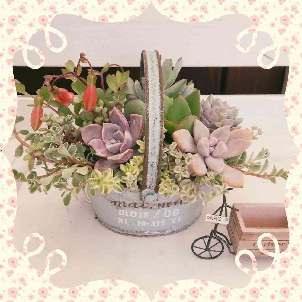 手のひらに乗るくらいの、小さなブリキのバスケット🖐