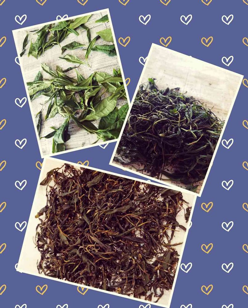 1、摘んだ茶葉を涼しいとこに丸1日放置したもの。半分くらい水分抜けた状態☝