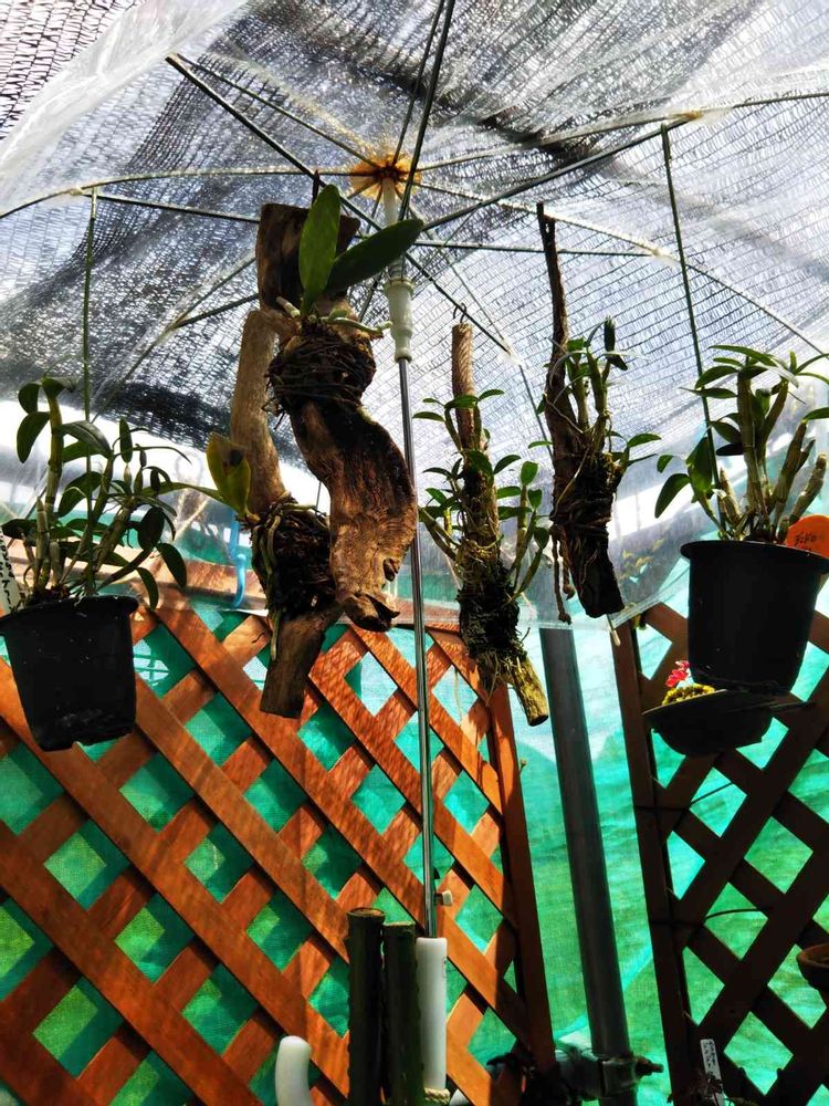 生き残りの胡蝶蘭(当初八本😔)二本😣今日外にかけました。廃棄用ビニール傘を利用してみました😂これなら大丈夫と思います(風の里)😄傘を再雇用どうだろうか🤔デンドロビウム・キンギアナム等掛ける予定😒