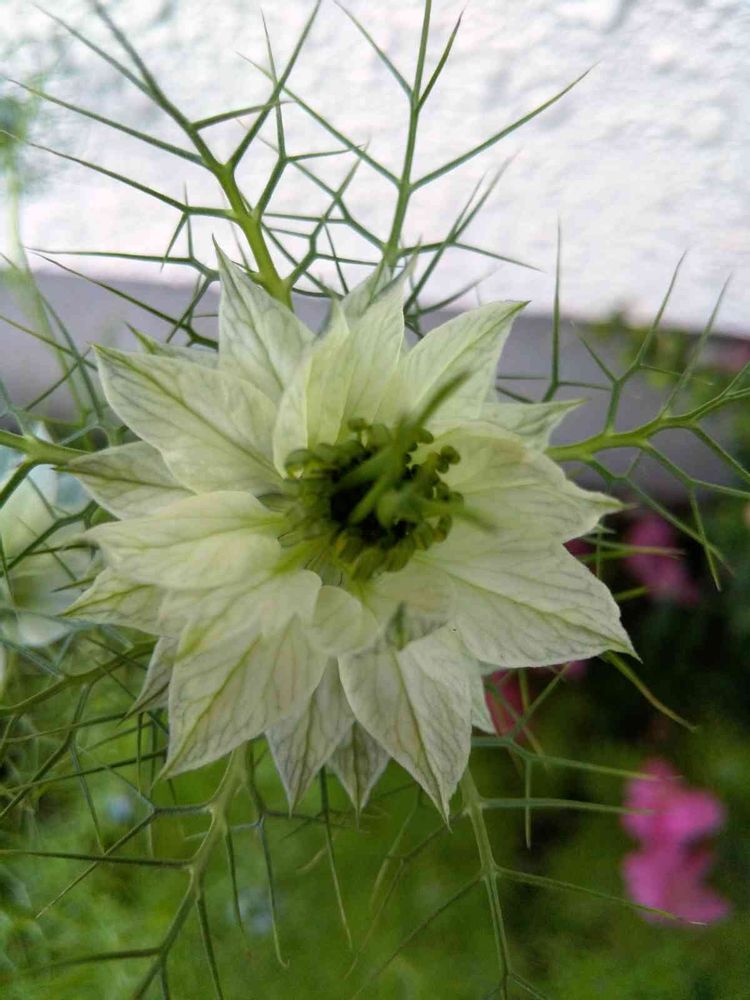 種まきのニゲラ、ブルーと白ですが、一重のニゲラも咲いてびっくりしてます。
