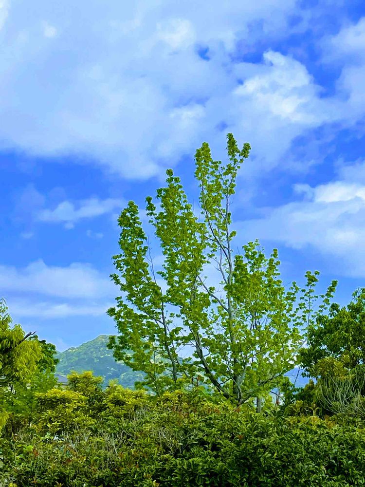若葉の美しい樹木が青空に映えて、美しいですね\(^o^)/