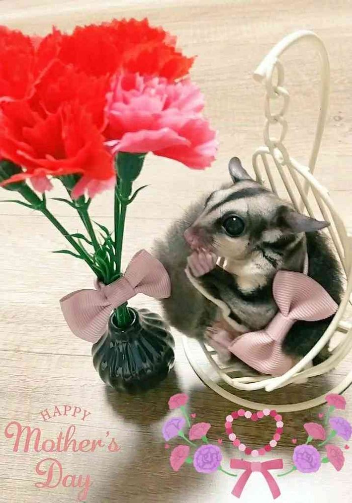 娘のペットのミヤビちゃんから母の日プレゼント💐の写真、可愛らしい💕💕💘