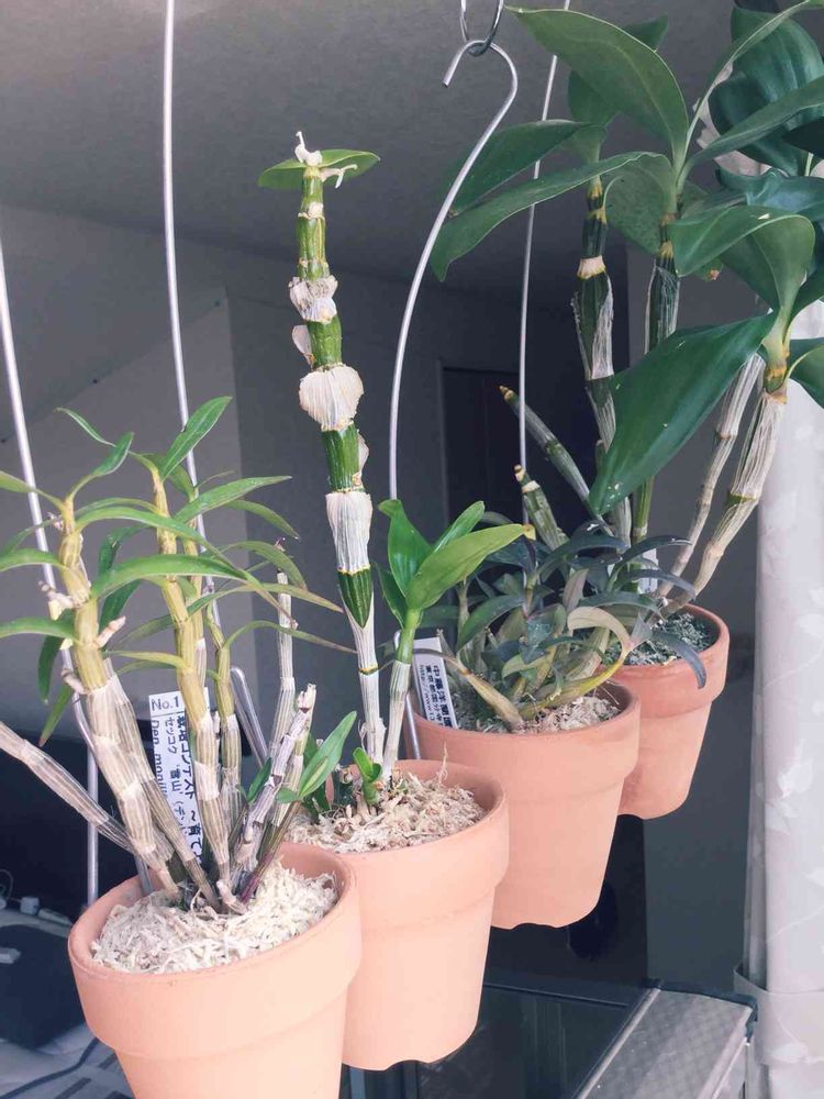 奥から、デンドロビウムファーメリー、キンギアナム、ノビル系、セッコク。