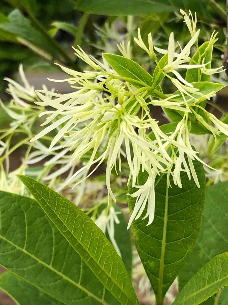 狭山・境緑道で、ナンジャモンジヤの若い木か⁉️ 5月5日に深大寺に行って、殆ど散り終わった残りの花を写したのに似ている。