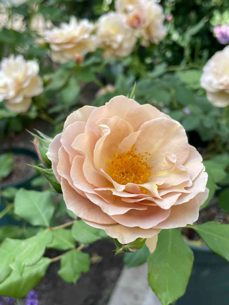 和バラのシャルロット ペリアン が 欲しかったけど 苗は買えないし お部屋の🌹では 大きくなるまで時間が かかるので ずっと ラブロッシュが欲しかったの この春こそはと 思ってたんだけど 見本で出してあった鉢しか無かったので お高めだったわ😅(娘が出したけど・・・)