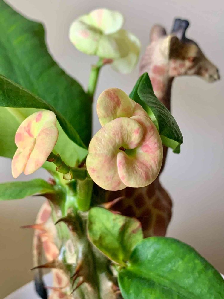 花の後ろにキリン🦒が置いて有るんだね!えーて大きくして見た😱☀️きりんの花?