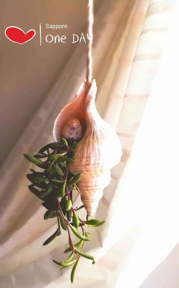 貝殻(北海道産のツブ貝)の祠でまったりとお昼寝中のハリネズミ🦔ちゃん❤