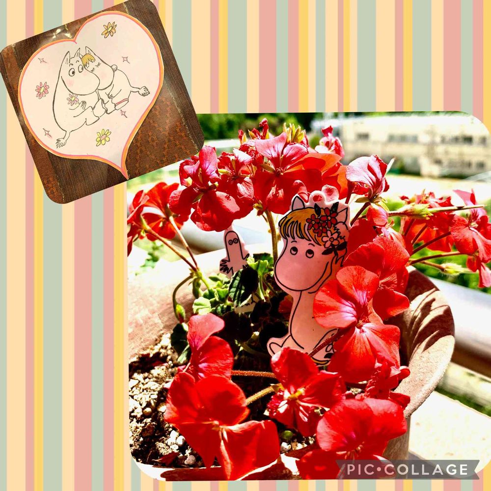 ムーミンのプラ板が影になってうまく撮れないので、明るく加工したら花びらも透けた感じになり、初夏みたいに☀️