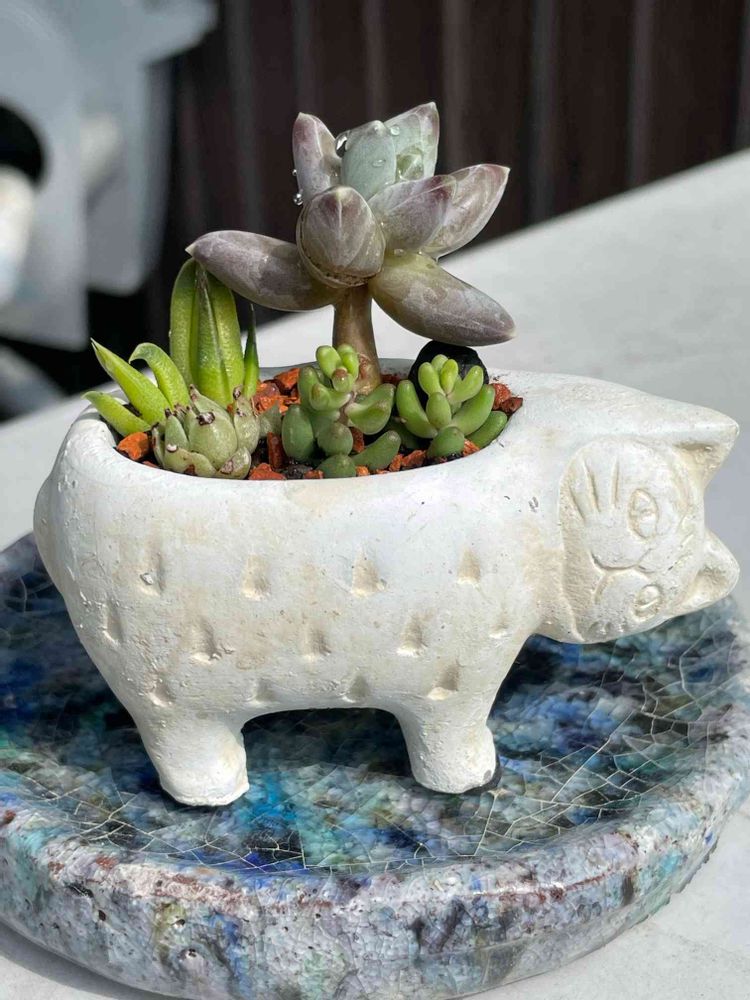 本当に可愛い鉢ですね✨横向きの顔がユーモラスで素朴な感じが、良いですね✨😌多肉さんも派手でなく鉢に合ってますね😊🎶