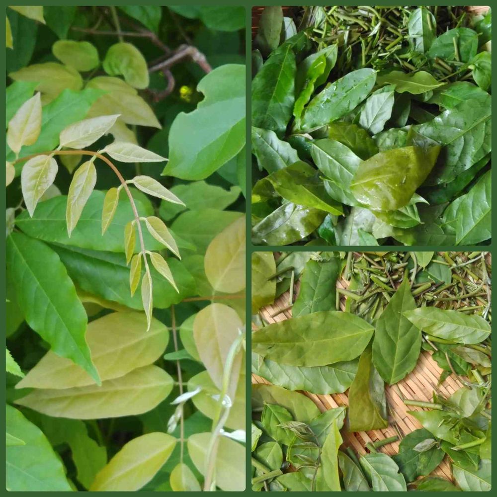 3️⃣小葉を1枚ずつはがし取り、つるは細断する。