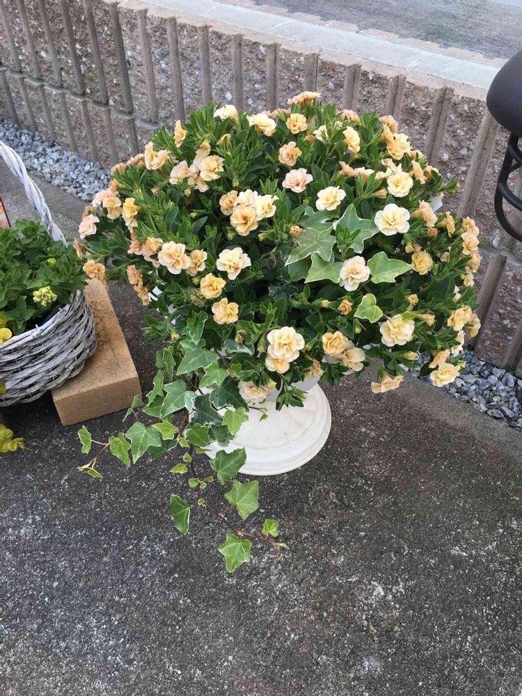 ミリオンベルプチホイップ’ピーナッツバター'をヘデラと寄植えに。