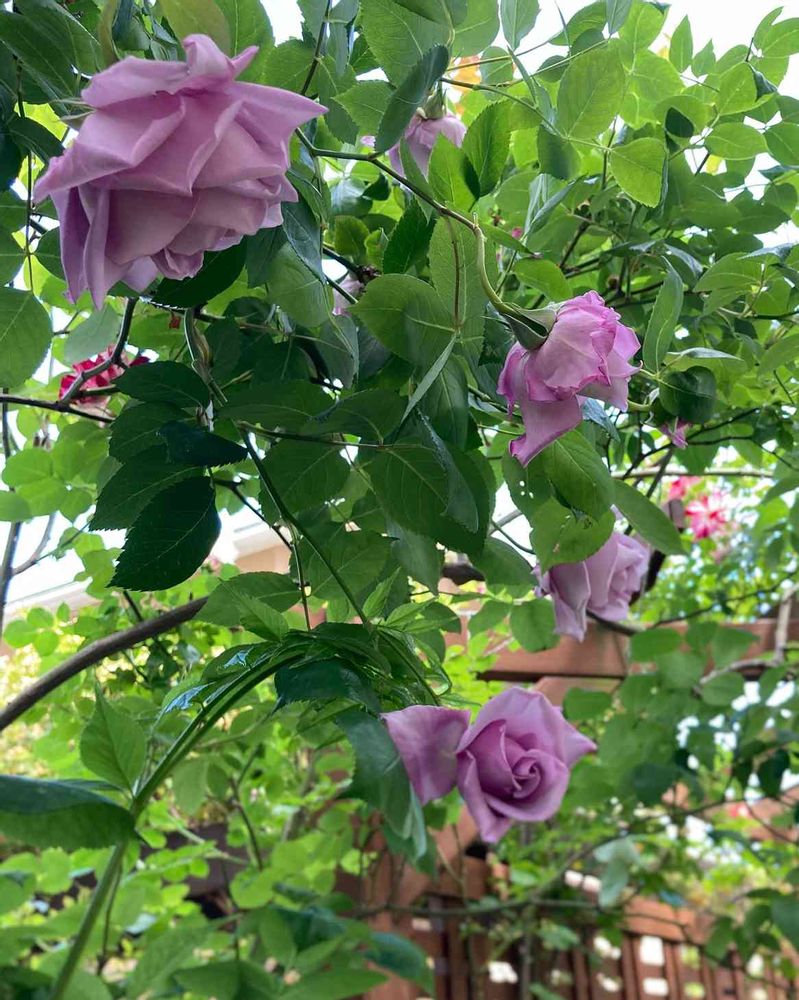 ブルームーン(CL)が咲いています。ところどころにフォースオブジュライ(CL)も垣間見えます。