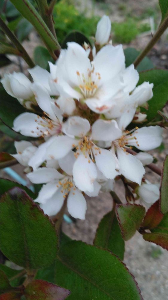 柿の木の下に何か分からない木が生えてたので移植してたら今朝初めて花が咲き調べてみたらモッコクモドキらしい。