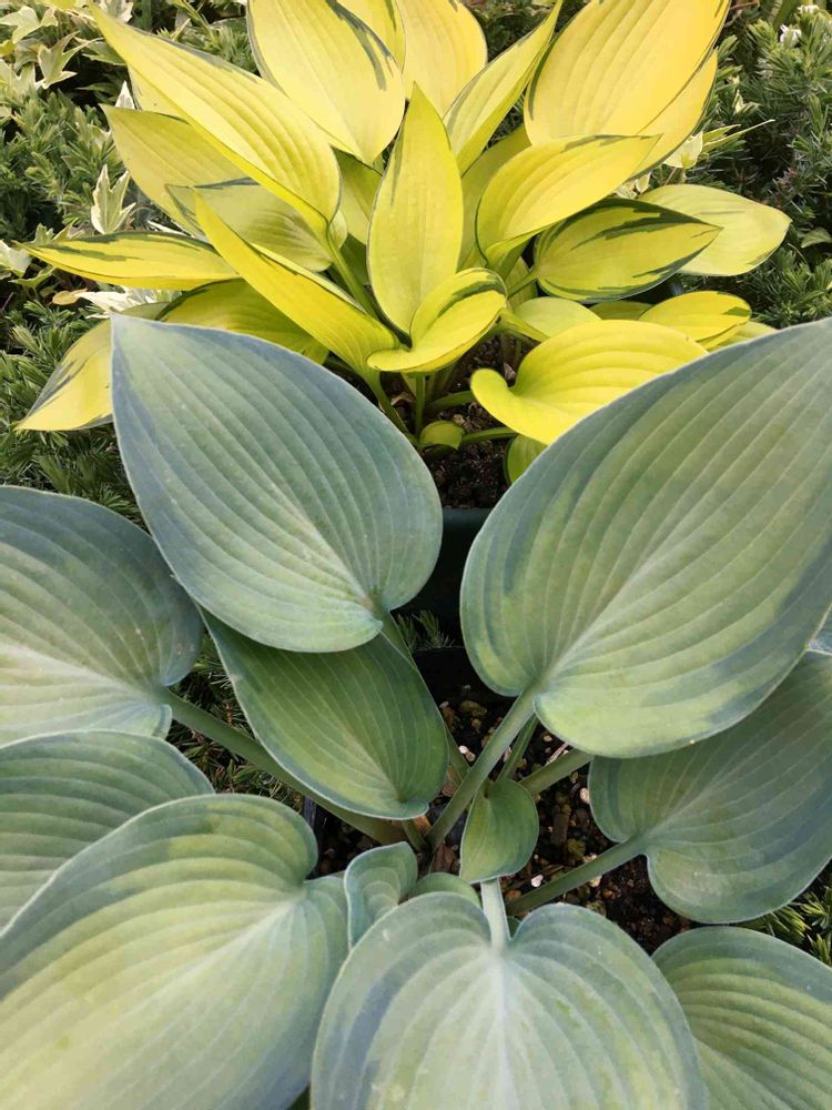 本日のhosta collaborationは、上からジューンフィーバーとパラダイスジョイスです。光沢あるゴールドとマットなニュアンスブルーの組み合わせ。いずれも名品ハルシオンからの派生種。いかがでしょうか。