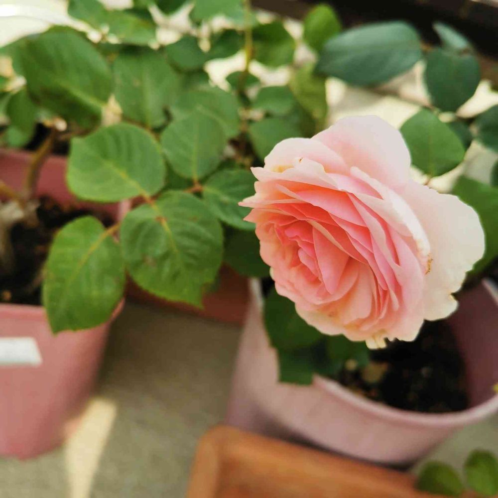 鉢植え二番めに開花したのはオリビアちゃん🌹
