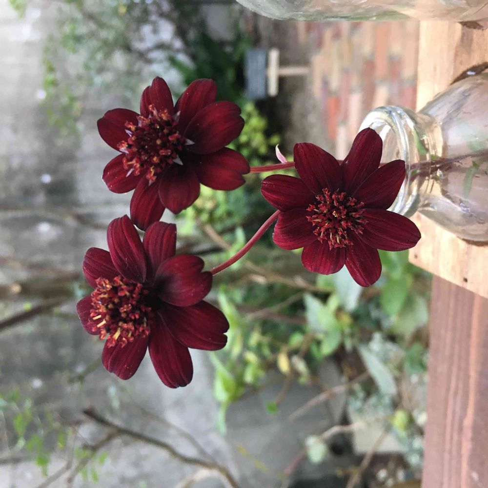 ベルベット(ビロード)のような質感を持つシックなチョコレート色の花とチョコレートの香りが充満するチョコレートコスモス チョカモカ!
