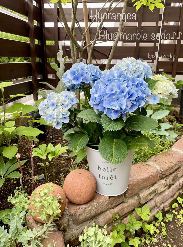 はぃ🖐いただきました♡青い紫陽花は咲き始めは白味の勝つ若草色〜水色〜青へ…