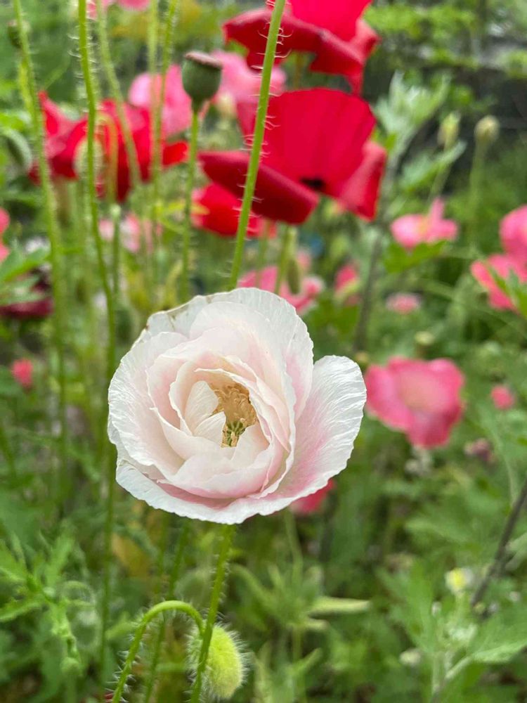 ヒナゲシ畑に一輪だけ白い花びら💕