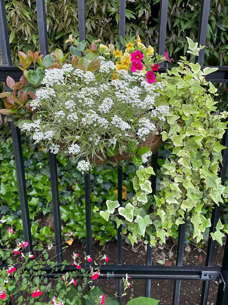 2021.4フェンスにハンギングの寄せ植えしてから冬越しし、またお花を咲かせてくれてます😊💕