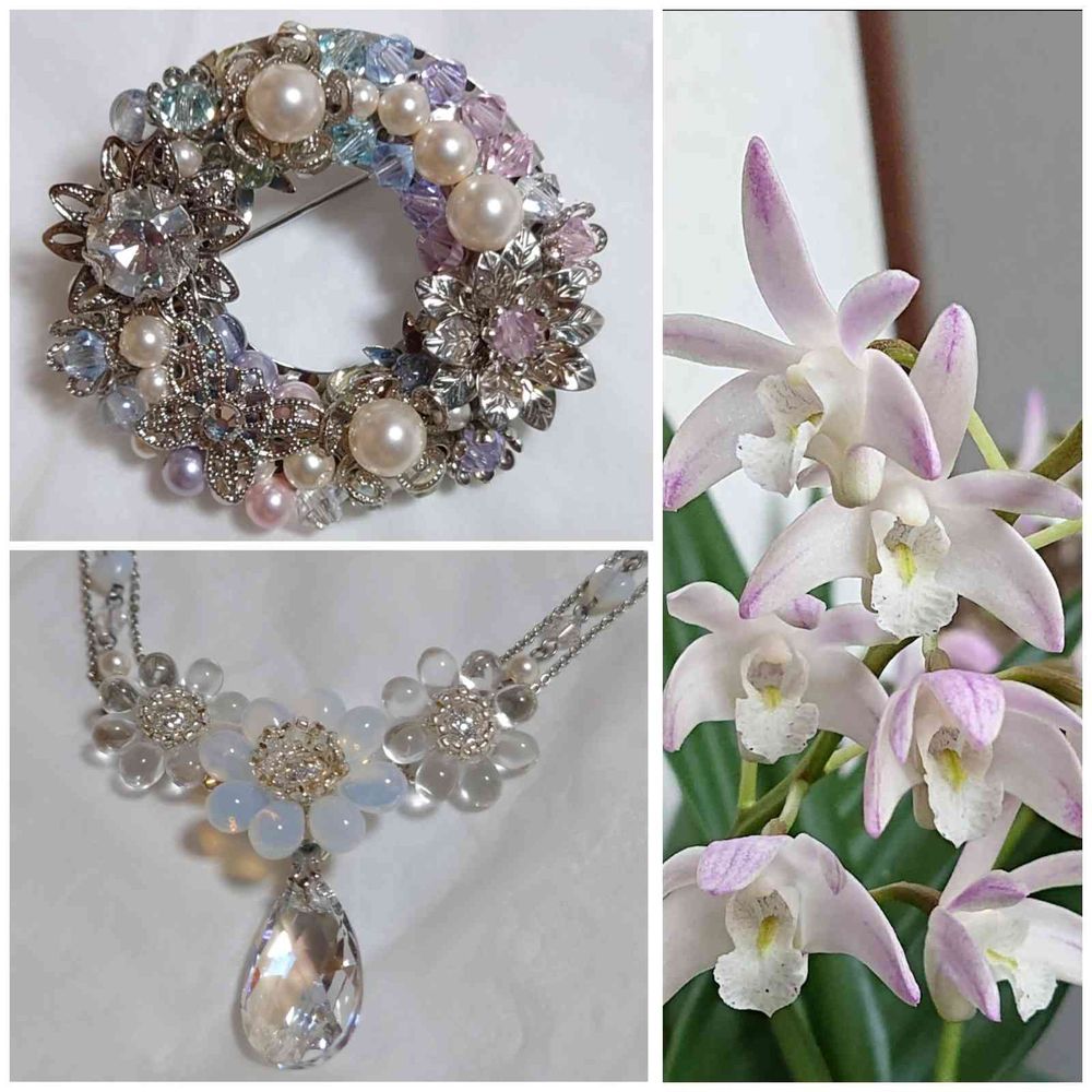 ↑はスワロ&スワロパールのブローチで、↓はスワロ&チェコのネックレスです✨💎✨