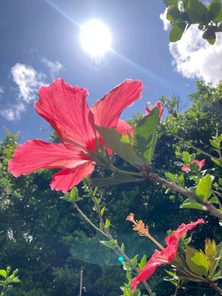 青空、日差し、ハイビスカスと合わさる夏って感じがするね😆