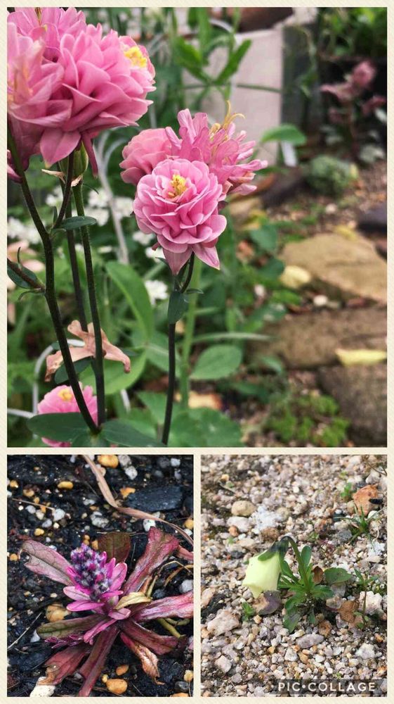 アジュガ,オダマキ ビジューガーネット,零れ種 ビオラの投稿画像
