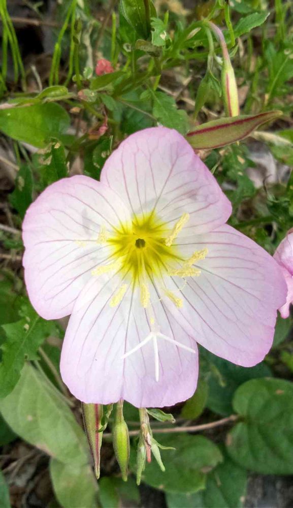 通りすがりに見かけました、道路脇に咲いていました月見草(ツキミソウ)☺️