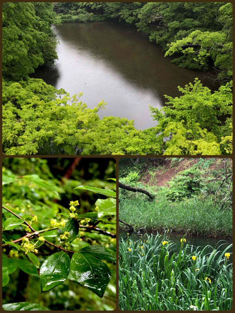 コマユミの花もしっとり濡れて✨✨池のほとりにはキショウブが咲いていました💛