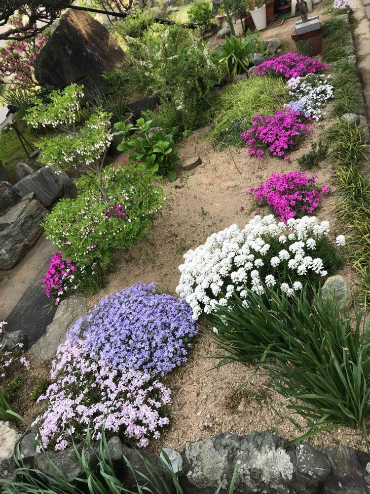芝桜とか満天星とかイベリスとか。三年目にしてやっとお花が一杯つくように✨👍💐🧡