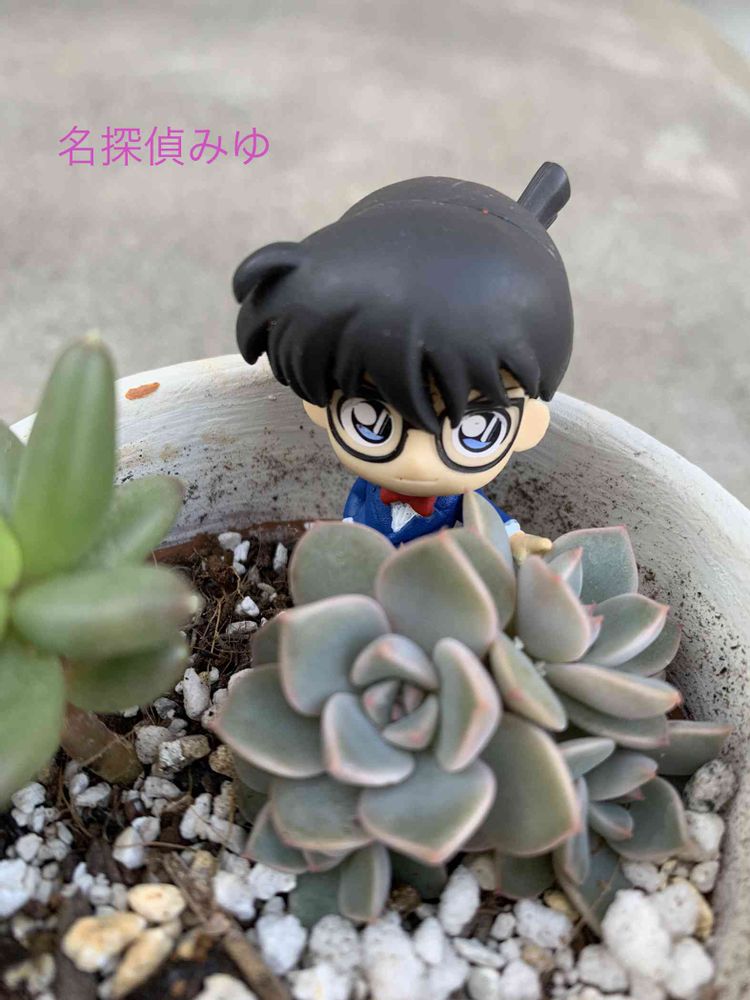 ピンクプリティの多肉さんもコナン君と良く合ってますね🎶