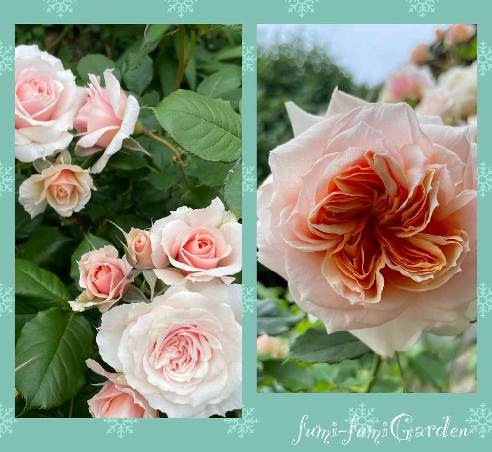 🌹いつもは、左のような房咲きスタイルの咲き方なのに初めて右のような一輪のクシュクシュスタイルに咲きました🌹