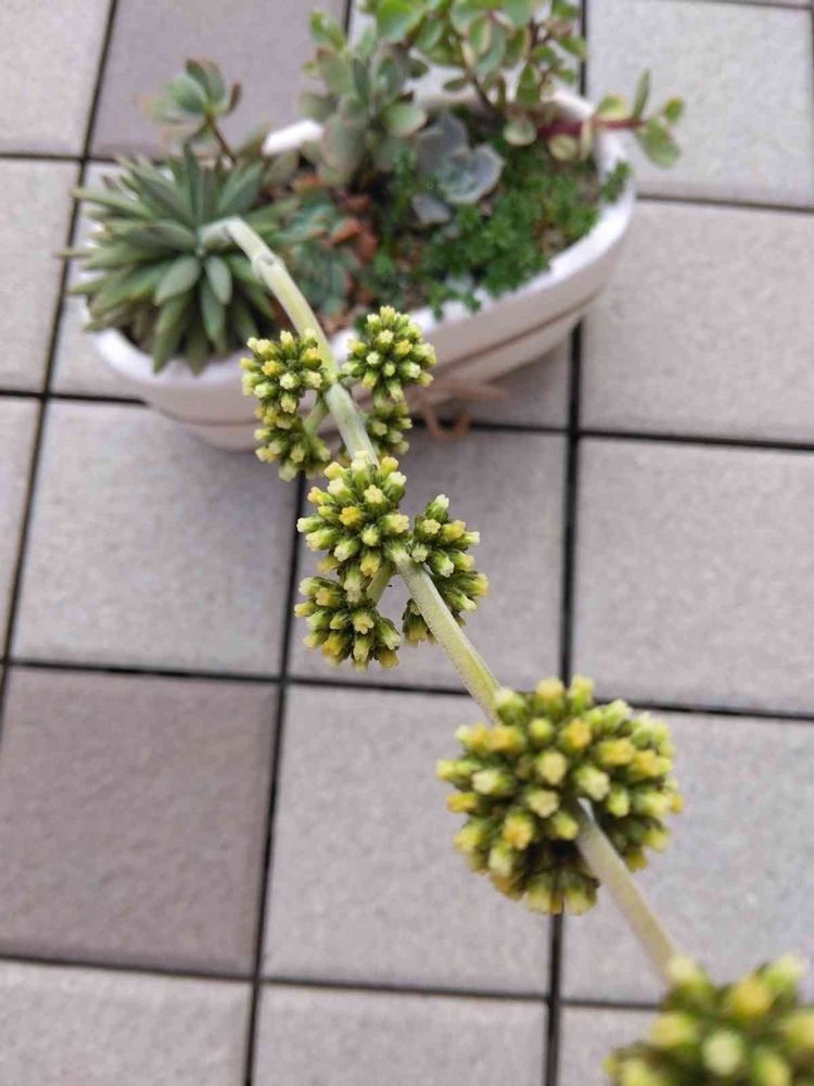まだ謎なんです~😅寄せ植えにいた子で花芽の感じが多肉だと思うのですが…😗