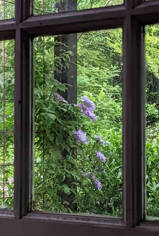 窓越しのクレマチス⚛️💜🌿