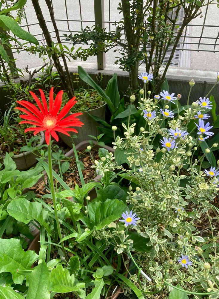 小さな庭,ガーベラ,斑入りブルーデージーの投稿画像