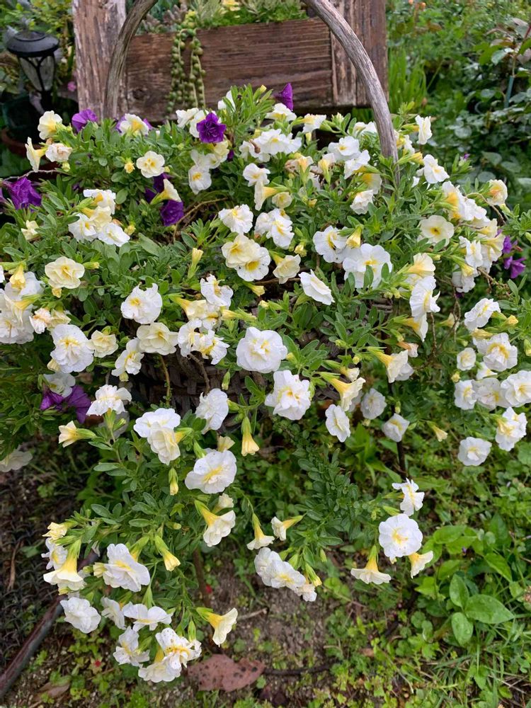 うちもカリブラコアが咲いていますが、鉢植え🪴から根が出て地面にしっかり固定しちゃいました😅なので地面を這うように咲いてるんです。