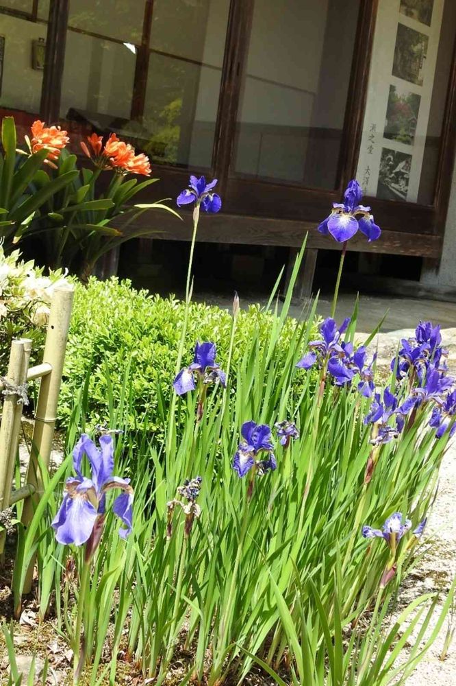 お寺の境内で咲いていた綺麗な💜コアヤメ💜と🧡クンシラン🧡