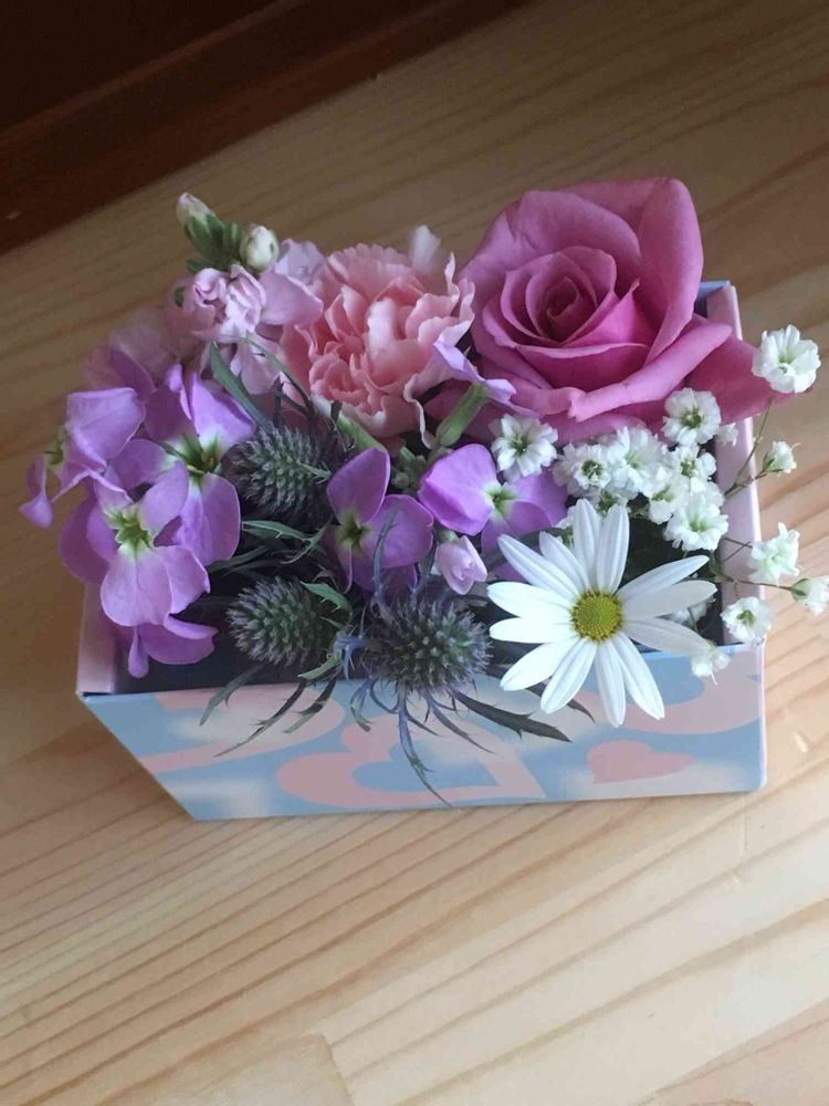 さんこちらこそどうぞよろしくお願いいたしま〜す😸お花💐のおわったアトのコトまで考えられていて空き箱アレンジすごい〜🌟ですね〜🙀空き箱の中には何か水もれ💧しない容器が入っているのですか❓