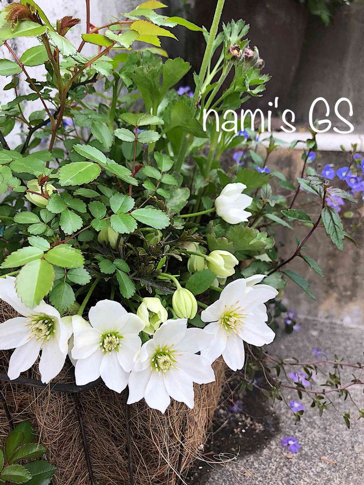あれこれ寄せ植えてるから、短いツルのままで結果オーライ🌟