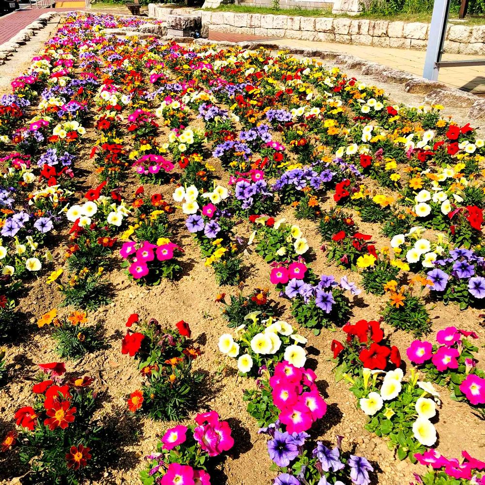 連休中に見かけた花壇です!