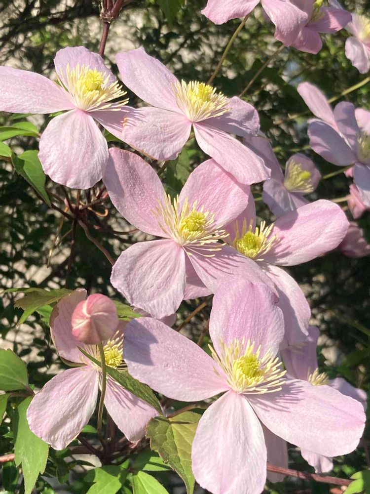 モンタナ、優しいピンクですきなクレマチス🌸シベに目がいきますね😃🎶