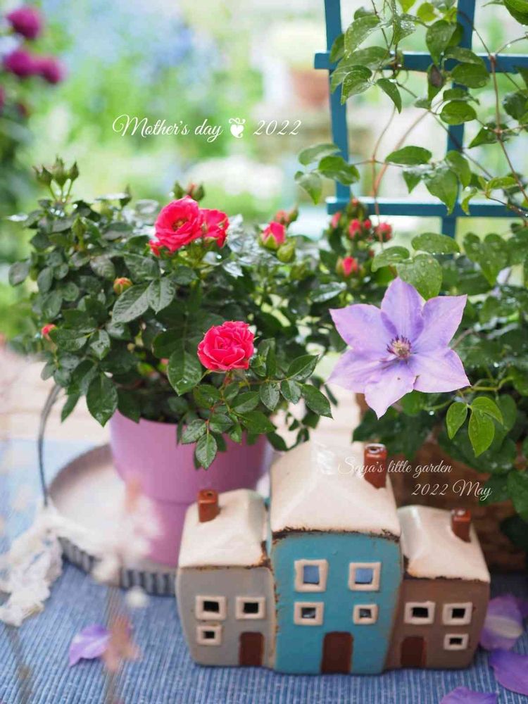 右のクレマチスは去年の母の日💜キャンドルハウスは去年のホワイトデー🏡