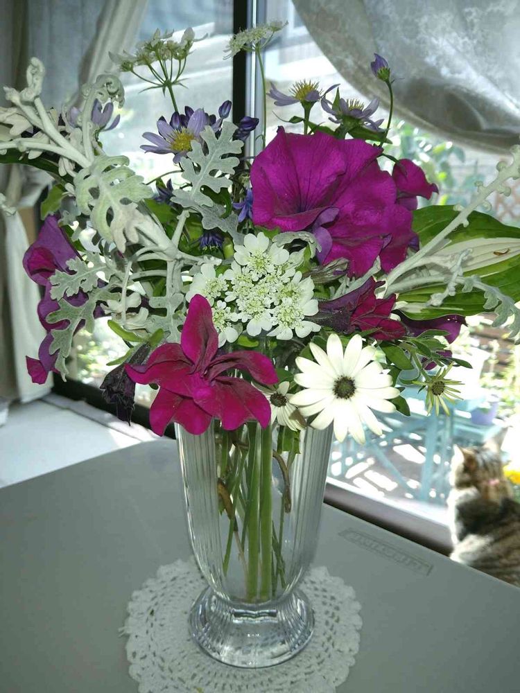 年越しのペチュニア✂したので庭の花達と花瓶に飾りました🎶
