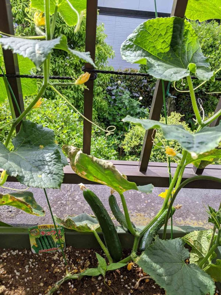 朝日を浴びて胡瓜が3本!!もうすぐ堪能出来るなあ〜👏🥰🎶新鮮百倍やね🎉