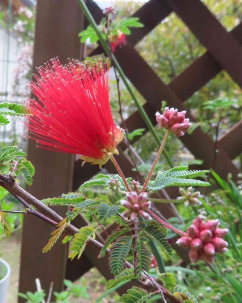 優しい鮮やかな真っ赤の緋合歓可愛いですよね