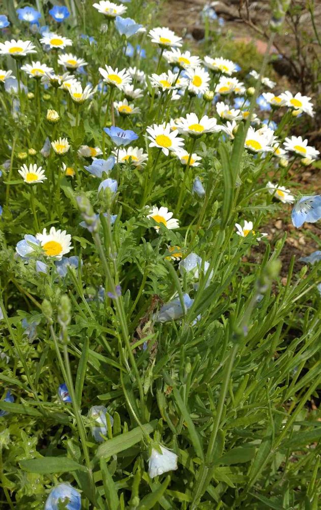 ネモフィラ & ノースポールさんが咲いてるうちに青い🔵ニゲラさんが早く咲いてほしいです😋💙