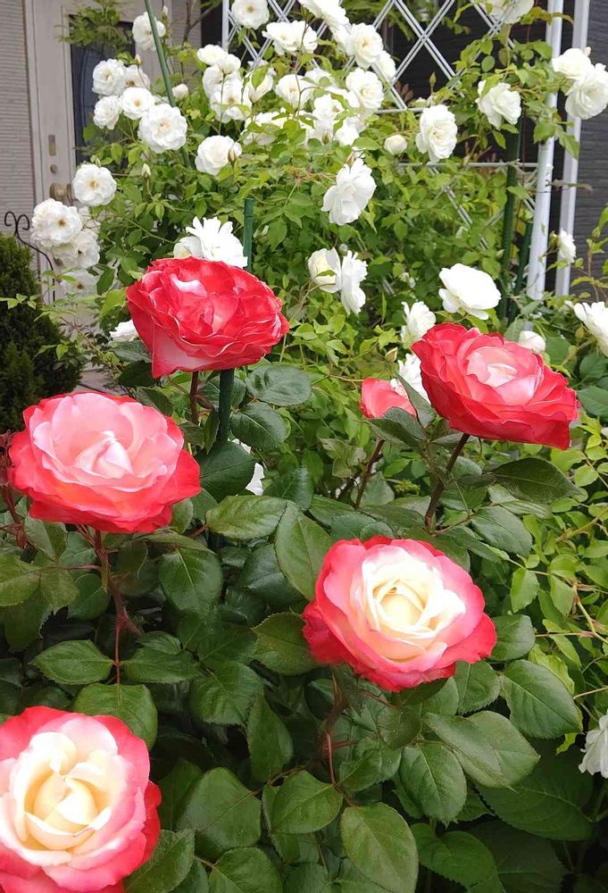 7にゃんさんのアイスバーグはつるバラの方だったのですね⁉️白いつるバラはどの🌹とも合わせやすいですね☺️