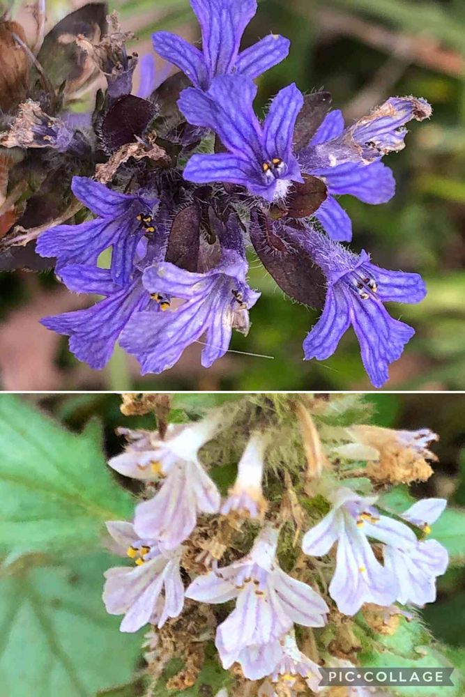山に入る前の家庭菜園みたいな空き地に「セイヨウジュウニヒトエ(園芸ではアジュガ)」が濃い紫色の花を開いていました。